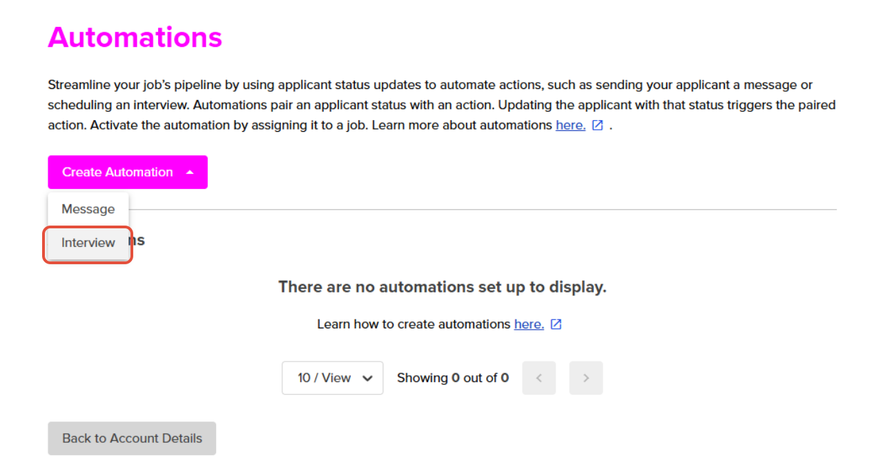 - Once have created the Interview Automation you can now assign it a job.